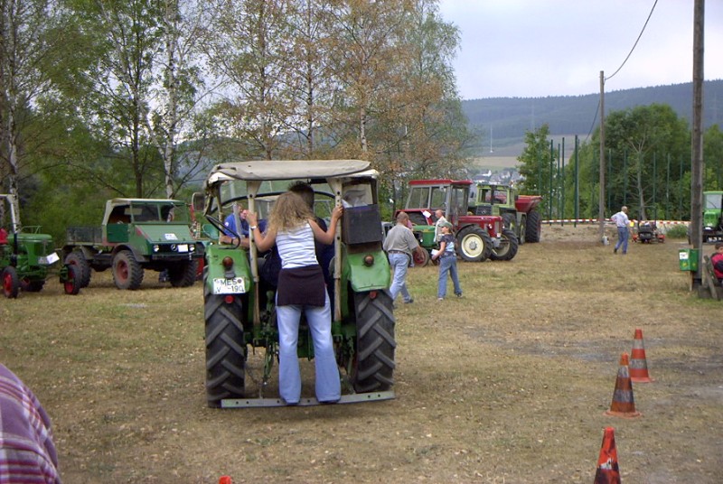 Es war wieder soweit, die persönlichen Einladungen vom Medebacher Club kündigten es ja schon kurz vorher an: das größte Trecker- und Oldtimertreffen des Jahres stand vom 11. bis 13. September bevor. Im Vorfeld hofften alle Treckerfahrer auf wenigstens einigermaßen schönes Wetter, doch gleich vorweg – man wurde doch ein wenig enttäuscht. Es war durchweg trübe und besonders am Sonntag von oben nass. Aber das dem Medebachern anzukreiden, wäre falsch, man hatte dort eine gewohnt professionelle aber lockere Veranstaltung aufgebaut. Einige Nuttlarer mit „festem Dach“, zwei Hanomag AL 28er, reisten bereits am Freitagnachmittag an, um auch schon die Plätze für die restliche Truppe abzustecken. Diese gesellte sich zumeist erst am Samstagnachmittag nach und nach dazu: zwei Eicher-, ein Hanomag- und ein Schlütertraktor. Allesamt mit passendem Wohnanhänger inklusive Proviant in fester und flüssiger Form. So gerüstet konnte man den Rest des Samstags gut überstehen, ohne auf die örtliche Infrastruktur am Festgelände zurückgreifen zu müssen. Doch das tat man dann doch nicht so ganz, schließlich muß auch der Medebacher Verein über Einnahmen verfügen, denn der hat ja auch, wie jeder andere Club, Auslagen auf der Veranstaltung. Diese waren bestimmt nicht unbeträchtlich , da eine original englische Dampflokomobile mit Stromgenerator vor Ort die ganze Zeit in Betrieb war. Diese lief auch am Abend in voller Lichterpracht, wie man das von Dorset gewohnt war. Zudem wurden tagsüber natürlich Pflugvorführungen sowie Holzbearbeitung vorgestellt. So mancher konnte auch die Kraft seines mehr oder weniger starken Traktors am Baumstamm erproben. Die Odltimeraustellung bot einen guten bis fast kompletten Überblick über die gesamte Bandbreite der zumeist in Deutschland gebauten Traktoren der 40er, 50er, 60er und 70er Jahre. Vieles stand sogar nicht nur einfach bunt nebeneinander, sondern war nach Marken geordnet, und wie immer in ordentlichen Reihen hintereinander. Leider war diesesmal keine Sonderausstelleung einer einzelnen Marke dabei, dafür aber teils auch anderes landwirtschaftliches Gerät, wie kleine selbstfahrende Mähdrescher oder was die Bauern sonst noch so in Gebrauch hatten. Im Automobilen Bereich sah man nicht ganz so viele Fahrzeuge wie sonst die Jahre, was aber am durchwachsenen Wetter gelegen haben könnte. Dafür fuhren die Medebacher aber zusätzlich zum Augenschmaus einen kullinarischen auf: den Kartoffeldämpfer in der Größe einer Lokomobile! Auch die anderen Genüsse leiblicher Art konnten befriedigt werden, es gab die obligatorischen Würstchen-, Pommes-, Kuchen- und Bierstände die auch gut besucht waren. Am Sonntagmorgen erfreute zudem ein kostenloses Frühstück die vom Vortag übernachtenden Aussteller, wobei gegen eine kleine Spende nichts einzuwenden war. Doch noch einmal zurück zum Samstagabend und der musikalischen Darbietung in Form einer tüchtigen Rockband. Diese war enorm laut und vom melodischen Unterhaltungswert derart deplaziert, dass so mancher Treckerfan dachte er sei in Woodstock und in Gefahr schwerhörig zu werden! Da stellte man sich die berechtigte Frage nach dem Sinn eines Rockbandkonzerts auf einer Trecker- und Oldtimervorführung, an der ja weitaus mehrheitlich ältere Semester in den Fahrerlagern vertreten sind. Diese, und nicht nur die Nuttlarer, kehrten dann auch dem Spektakel frühzeitig den Rücken und an den heimischen Campingofen zurück. Doch fairerweise muss gesagt werden, dass das gesamte Treffen gut organisiert und trotz des widrigen Wetters auch ordentlich Zuschauer fand. Man hatte sich von Seiten der Veranstalter erkennbar Mühe gegeben, die leider nur in einem Punkt zuviel des Guten war – dem musikalischen! Autor: B. Schmidt