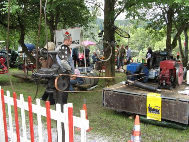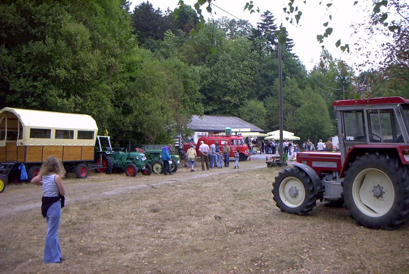 In fast schon gewohnter Mannschaftsstärke zogen die Nuttlarer Trecker- und Oldtimerfreunde am Samstag bei sehr durchwachsenem, aber trockenem Wetter in Richtung des schönen Ortes Harth bei Büren im Paderborner Land. Die Route führte über Brilon – Scharfenberg erst einmal bis kurz vor Brilon – Alme, von wo die Landstraße links Richtung Büren abzweigte. Der weitere Verlauf führte über eine mäßig befahrene Strecke die sich entlang des Flüsschens Alme im gleichnamigen Tal entlang schlängelte. Eine landschaftlich sehr reizvolle Gegend. Ungefähr 4 Kilometer gefahren sah man schon den Ort Harth auf Bergeshöhe in Reichweite, als es galt, die einzig wirkliche Steigung dorthin in Angriff zu nehmen. Doch diese Wegstrecke nahmen die berggewohnten Nuttlarer mit Bravour, sodaß nach kurzer Zeit das von weitem ersichtliche mit einem am Autokran hängenden Traktor kenntlich gemachten Festgelände erreicht war. Diese erstreckt sich am Ortsanfang der gemütlichen Ortschaft Harth rund um den Bauernhof Rüsing. Obwohl die Bezeichnung „Festgelände“ zumindest für die Ausstellungsfläche aufgrund des vorhandenen lehmigen Stoppelfeldes etwas übertrieben erschien, so haben die dort veranstaltenden Schützenbrüder sich aber mit dem Rest des Areals sichtlich Mühe gegeben. Um den Bauernhof Rüsing herum gruppierten sich gutbestückte Getränke-, Imbiss-, Süßigkeiten und Kuchenstände, um die Aufmerksamkeit der Gäste ebenso auf sich zu ziehen, wie die dort zudem noch aufgestellten automobilen Klassiker. Leider spielte das Wetter am besagten Samstagabend nicht so ganz mit, denn es begann nach der sehr langsamen Dorfrundfahrt der Oldtimer doch merklich zu regnen. Das war aber nicht weiter schlimm, denn das obligatorische „Nachdieseln“ zu später Stunde bot dank gut ausgewählter Musik von der Scheibe und ebenso interessanten Gesprächen genug Kurzweil. Doch erging es den Nuttlarern wahrscheinlich genauso wie vielen anderen Campern – der Abend war noch jung, und man verlängerten denselbigen um weitere Stunden nach Mitternacht im eigenen Mannschaftszelt. Auf natürliche Art und Weise unterstützten dabei zudem einige Alkoholika den positiven Gemütszustand soweit, daß sich ein gewisser, nicht mehr zu überbietender, geistiger Erkenntnisstand einstellte. Leider haperte es dann an der körperlichen Fitness um diesen Zustand länger zu ertragen, und man trollte über den mittlerweile verschlammten Platz dem ersehnten Bette zu. Die Nachtruhe war also einigermaßen kurz und das kostenlose Frühstück der Harther wartete in ausreichendem Maße auf die noch müden Gesellen. Manch ein Nuttlarer wagte den nicht sehr kurzen Weg zur Frühstückskantine nicht, und genoss das Brötchen unter der eigenen Stoffplane. An diesem folgenden Sonntag ließen die Veranstalter eine wirklich tolle Bayern – Revivalband aufspielen, dieses mal in rund 10 köpfiger Anzahl und ziemlich perfekt. Zusehens füllte sich der Platz vor dem Bauernhof mit Besuchern, die mal hier verweilend, mal aufs „Festgelände“ pendelnd ihre Runden zogen. Auch letztgenanntes Areal wurde mehr und mehr hauptsächlich von Treckeroldtimern beackert. Einer der ältesten, ein Lanz Bulldog, von 1929, aber auch einige Youngtimer wie z.B. diverse Hanomags der letzten Baujahre. Es gab wirklich schönes zu sehen, auch das schon vielbesprochene Wetter besserte sich, es blieb den Rest des Tages von oben trocken. Eine nette Überraschung erlebte der Autor dieser Zeilen, er bekam im Rahmen einer Bewertung der schönsten Oldtimer, sogar durch TÜV – Mitarbeiter am Platz durchgeführt, den 3. Platz für seinen MAN vom Baujahr 1952. Nicht nur der Pokal blieb eine schöne Erinnerung, auch das Fest insgesamt und die nette Atmosphäre, auch unter den Nuttlarern, machte schon wieder Lust auf ein nächstes Mal in Büren – Harth zum Oldtimertreffen in 2 Jahren. Echt empfehlenswert! Autor: B. Schmidt